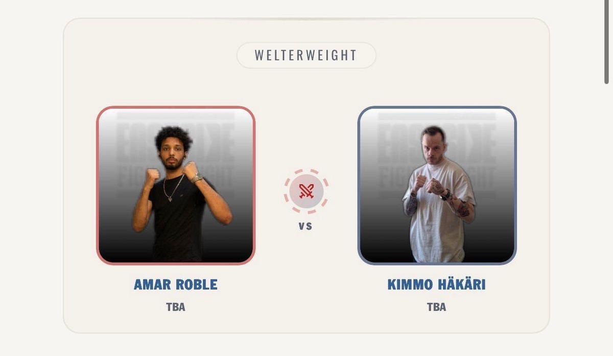 Tarmon Kimmo Häkäri nyrkkeilee Amar Roble:a vastaan Eastside Fight Night:issa